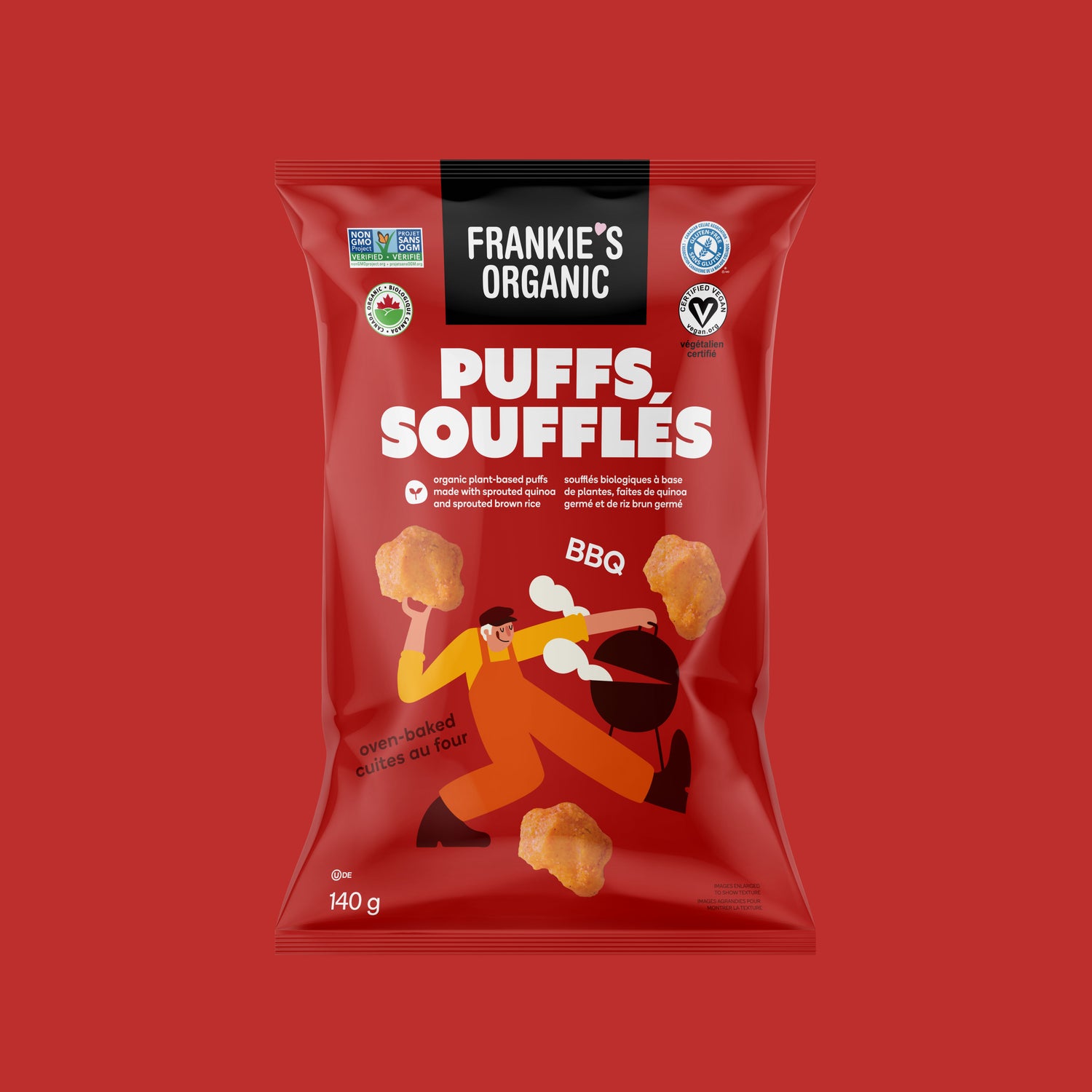 Nos Soufflés au BBQ ont un goût prononcé et audacieux. Ils sont légers, croquants et irrésistiblement délicieux avec une vraie saveur de BBQ ! Prenez-les comme collation ou finissez le sac entier. Ces soufflés sans culpabilité sont faits avec des ingrédients bons pour la santé comme le quinoa germé et le riz brun germé. Ils sont également certifiés sans gluten et végétaliens sans compromis sur la saveur, ce qui en fait la collation parfaite pour tout le monde.