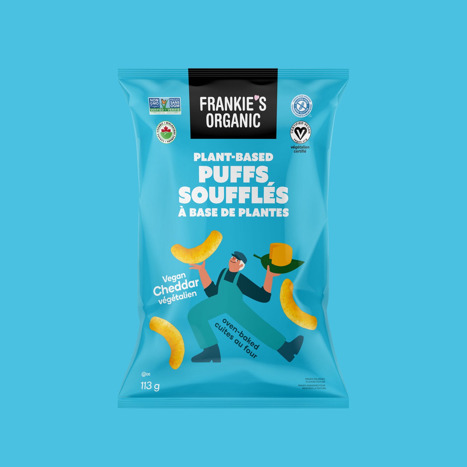 Les Soufflés au cheddar végétalien de Frankie's ont un goût de fromage audacieux. Ils sont légers, croquants et irrésistiblement délicieux avec une saveur de cheddar fort! Prenez-les comme collation – ou finissez le sac entier. Ces soufflés sans culpabilité sont faits avec des ingrédients bons pour la santé comme la semoule de maïs biologique. Ils sont également certifiés sans gluten et végétaliens sans compromis sur la saveur, ce qui en fait la collation parfaite pour tout le monde.